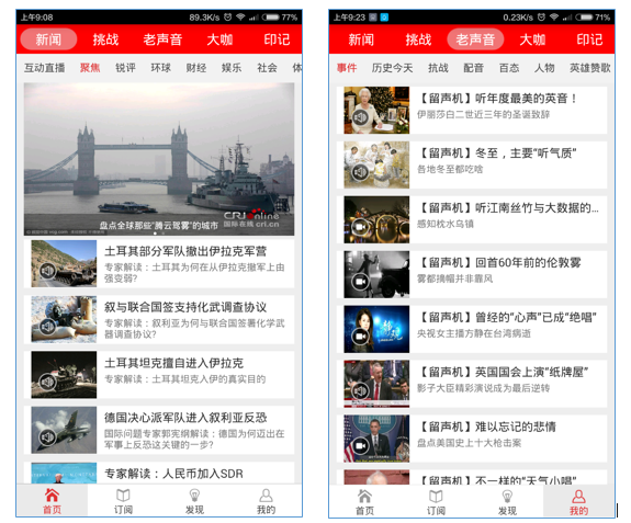 其中最具特色的直播互动栏目支持小视频、图文、音频的实时直播,直播同时互联网用户可实时通过发言参与直播节目互动,互动支持语音、文字、图片等多内容。实现了边看直播视频、边听音频、边互动的媒体融合应用。改版后的环球资讯广播将进一步将移动人群作为核心用户,面向全方位、高影响力受众,打造以国际资讯为核心的环球生活有声伙伴。
