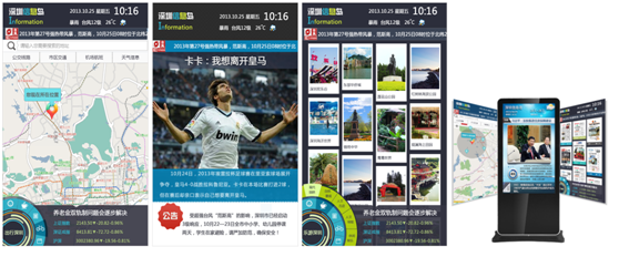 广告信息投放:支持采用视频、图片、图片+文字等素材组合进行广告展示。可以进行基于全屏的广告轮播(图片、视频)方式,或在展示界面指定的位置进行广告位展示,并同时可对广告营收情况进行可视化统计与报表生成。