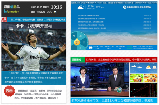 为能够确保在前端对这些显示终端进行统一发布管理,在后端对各类信息进行规范化处理,政府机构需要搭建一套稳定可靠的智能信息发布系统,并结合政府机构的政务系统,提供灵活高效的政府信息门户服务和信息交流平台,打造社会媒体信息传播的制高点。