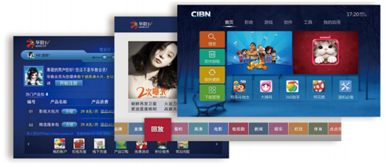系统支持典型展示的应用功能包括节目直播、直播回看、节目点播、节目收藏、个人中心、观看记录、节目查询、应用中心、在线支付、二维码生成等等。