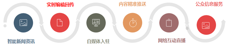 3.实时新闻发布/回传:系统支持新闻、行业资讯、财经、科技培训等不同形式的内容咨询发布,支持专题新闻资讯快速生产和展示。此外,用户只需通过手机客户端即可随时随地进行实时直播和上传管理。无论身处何种场景,都可通过云平台及时开展实时报道和编辑生产;支持自动发布、定时发布、置顶、稿件排行、定时下线等多种发布策略设定。