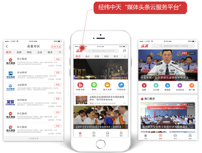 媒体头条云服务平台是经纬中天利用大数据、云计算、互动直播、内容精准推送、微视频等先进的互联网技术为各媒体单位包括(电视台、出版社、报社、政府/企业)等贴身打造的集行业资讯、活动直播、自媒体入驻、交流互动、内容推送、知识服务等多项功能于一体的特色移动客户端应用管理平台。