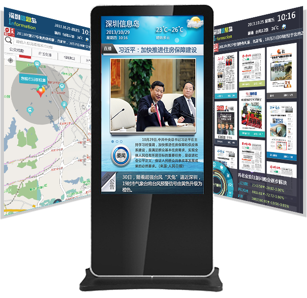 经纬中天大屏信息发布系统基于数字音视频动态信息传播技术,通过对图片、文字、报刊、影视节目等多内容的采集、收录、编辑、审核、发布、推送等流程实现针对户外各个信息终端(如:液晶屏、等离子、投影机、LED屏幕等)多内容与多应用的统一呈现与综合管理。支持对多个信息终端按照区域、社区、街道等多级类别进行分组管理,可在指定时间对指定地点的户外信息终端发布通知、公告、图片、电子报、广告及播放视频等,并通过数据规范、统一业务数据及数据级整合技术实现大屏交互应用,如社区互动、微博、微信、天气预报、金融、交通、一卡通及社保等应用,让百姓实实在在感受无线城市建成后,生活质量更高、办事效率更快、幸福感更强,为全面打造无线城市、智慧城市提供了新途径和手段。