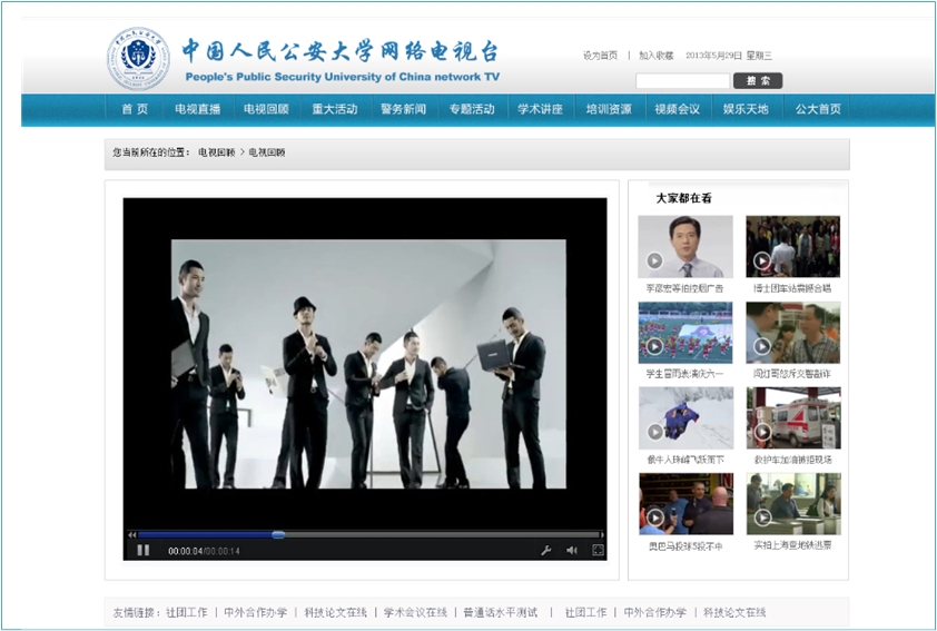 公安大学校园网络电视台建设实现了通过PC、电视机+机顶盒两种终端观看电视节目直播点播、校园活动直播、专题讲座直播点等多内容视音频节目,学生不需要再到互联网上去观看或下载视频节目,有效节约了外网带宽。同时可将一些有学习性的内容进行分门别类的录制存储,达到资源储备的目的。